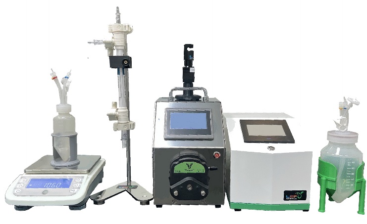全自動試量產型切向流過濾系統,處理樣品過濾、濃縮、透析、純化。主系統採用多功能數位蠕動幫浦,可設定流量範圍 0.06 ~ 2,280ml/min (1~600 rpm),適合處理由 5 ml ~ 10L的樣品。主系統搭配計量秤使用,當樣品完成換液與濃縮後,當達計量秤設定點時,會自動停止主機的運轉。